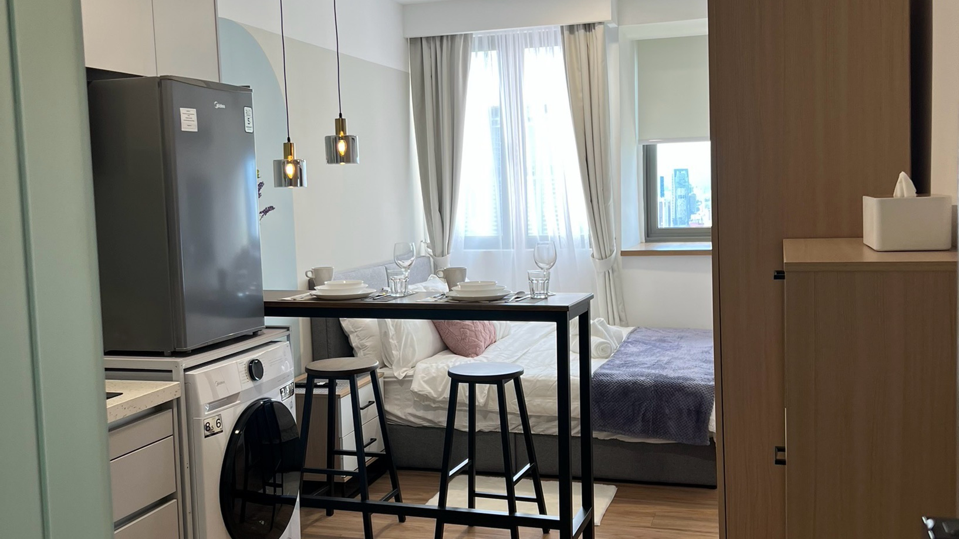 Unwind in our boutique-style studio suite, where stylish design meets cosy comfort and generous space to relax. Enjoy exclusive access to an epic infinity sky pool, a fully equipped gym, and a relaxed co-working space — all set within a vibrant, modern residence. Located in the heart of KL’s transportation hub, KL Sentral, getting around couldn’t be easier. The Monorail (Tun Sambanthan station) is just a 2-minute walk away, connecting you directly to KL Sentral and the city’s top attractions.